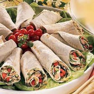 Note: Serve these wraps with a mixed fruit salad and iced tea. A lemon dessert sorbet, pie or bars would be a delightful accompaniment to this beautiful platter.