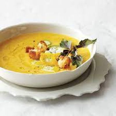 Note: This is an elegant breakfast to serve Christmas morning. Freeze soup ahead of time. To serve just thaw out till unfrozen.