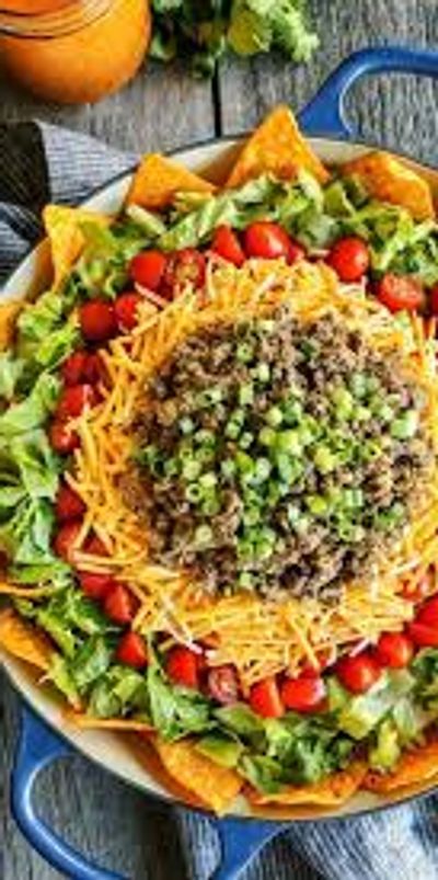 Add all ingredients into cooking pot. Cook until water evaporates. Let cool. Place on top of prepped salad. Toss. We will being to layer toppings. Sprinkle salad with 16 oz shredded sharp cheddar (I like Cracker Barrel), One bag of Taco flavored Doritos, reserve around 20-25 for garnish, add fresh chopped tomatoes, green onions, then pour the entire bottle of French Dressing over top. Add sour cream and guacamole. Garnish with cilantro on top.